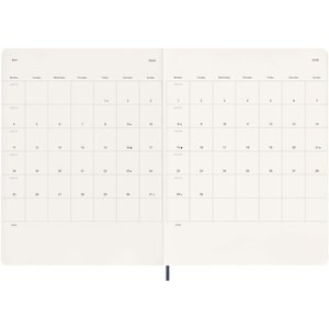Pehmeäkantisessa 12 kuukauden Moleskine-viikkokalenterissa tammikuusta joulukuuhun 2026 näkyy koko viikko yhdellä silmäyksellä. Lisäksi siinä on vuosi- ja kuukausikatsaussivuja laajemman kokonaiskuvan saamiseksi vuodesta sekä sivuja matkasuunnitelmia, ideoita ja tavoitteita varten. Kunkin viikon päivät näkyvät toisella puolella, ja toisella puolella on viivallinen sivu tehtäviä ja muistiinpanoja varten. Päivyrissä on norsunluun väristä hapotonta paperia, musta kuminauhasuljin, sivunauhamerkki, väriltään yhtenevä laajennettava sisätasku, tarroja henkilökohtaiseen räätälöintiin sekä vuositarrat selkäosaan.